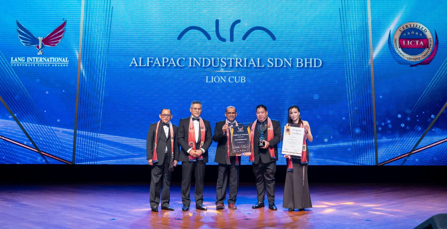 Alfapac Industrial Sdn Bhd was recognized under the Lion Cub category at the 6th Lang International Corporate Titan Awards (LICTA).
