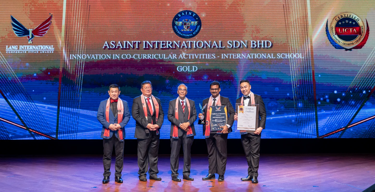 ASAINT International Sdn Bhd was honored with the “Innovation in Co-curricular Activities – International School” award at the 6th Lang International Corporate Titan Awards (LICTA) under the Gold Grade category.