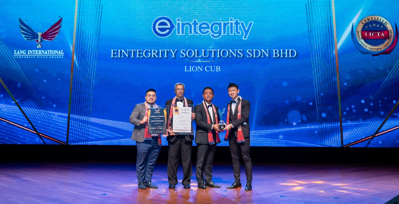 Eintegrity Solutions Sdn Bhd was recognized under the Lion Cub category at the 6th Lang International Corporate Titan Awards (LICTA).