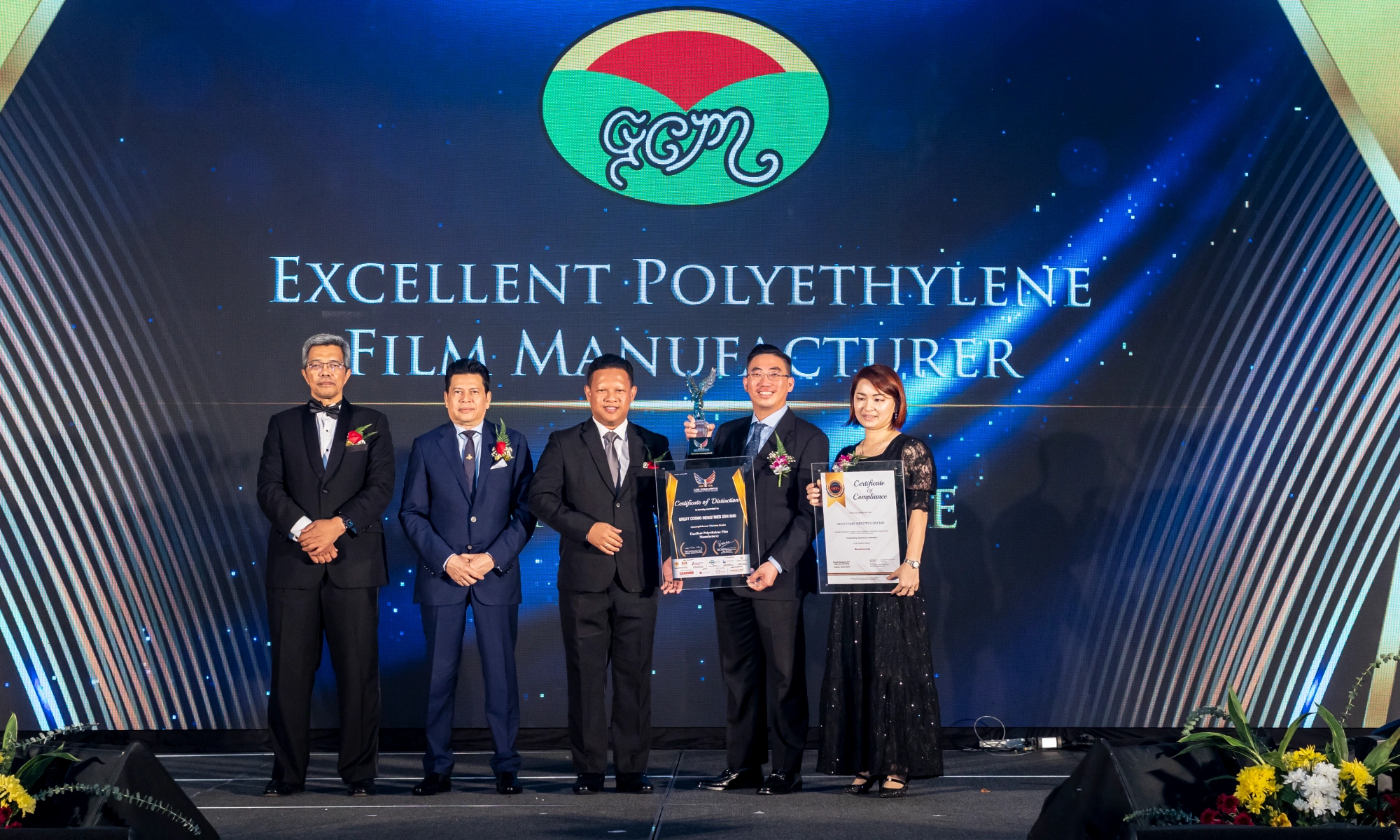 Mr. Cosmo Toe Tze Shiang, Managing Director and Ms. Joyce Teo of Great Cosmo received the award from YBhg. Ts. Dr. Mohd Zuhan bin Mohd Zain, Chairman of the Intellectual Property Corporation of Malaysia (MyIPO), in the presence of Yang Hormat Dato’ Sri Amim Wahab, Corporate Advisor, Nextgreen Global Berhad, alongside YBhg. Prof. Dr. Mohd Hassan Mohd Osman, Selection Committee, LICTA.