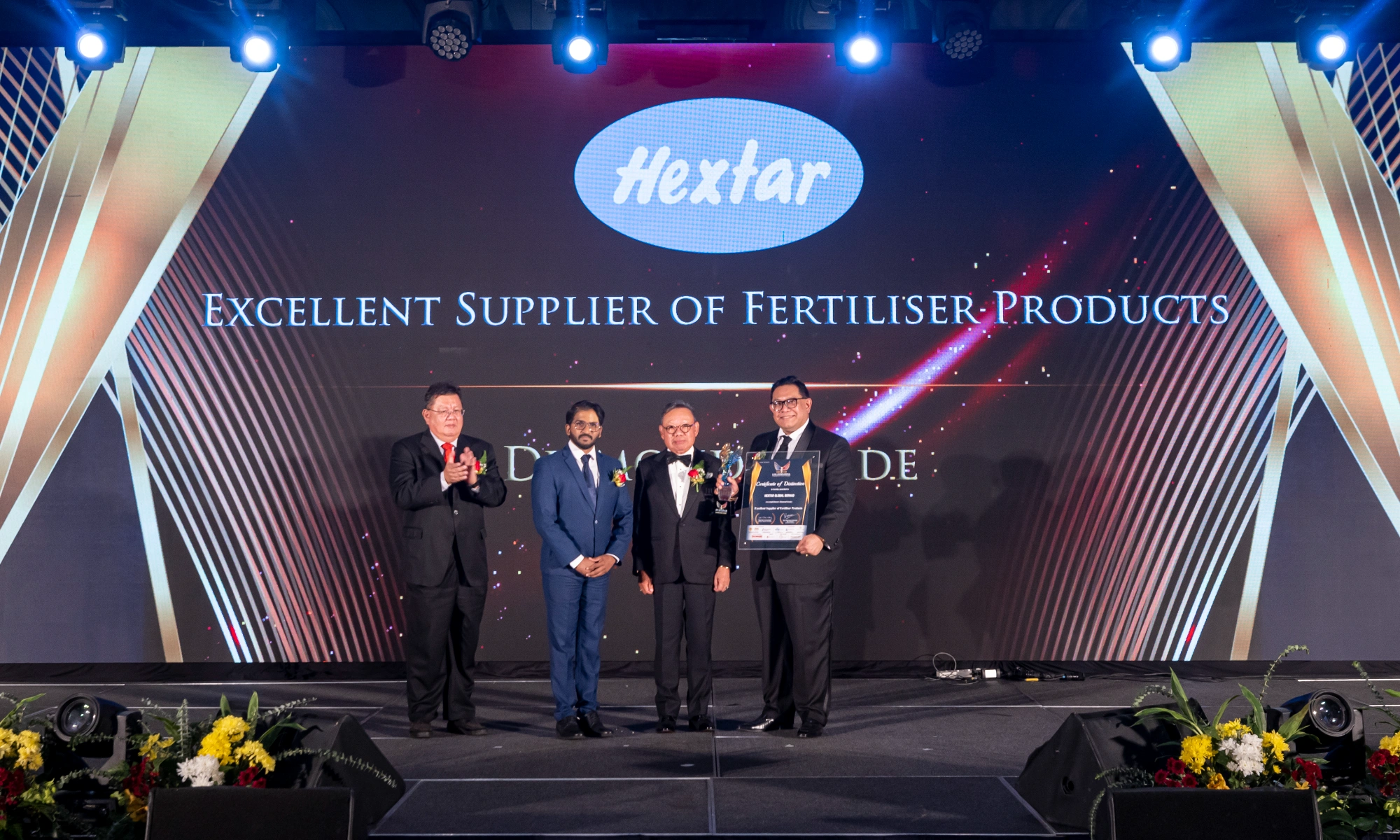 YBhg. Dato’ Sri Dr. Erwan Bin Dato’ Haji Mohd Tahir, Chairman of Hextar Global received the award from YB Tuan R. Yuneswaran, Member of Parliament, Segamat, in the presence of YBhg. Datuk Iskandar Abdul Malik, President, Council of Federal Datuk Malaysia alongside YBhg. Datuk Abang Sallehuddin Abg. Shokeran, Secretariat Chairman of LICTA.