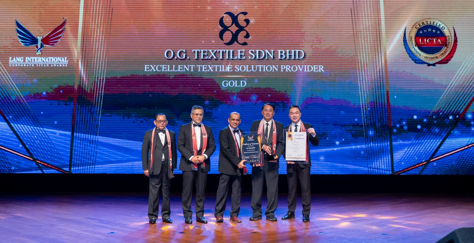 O.G. Textile Sdn Bhd was honored with the “Excellent Textile Solution Provider” award at the 6th Lang International Corporate Titan Awards (LICTA) under the Gold Grade category.