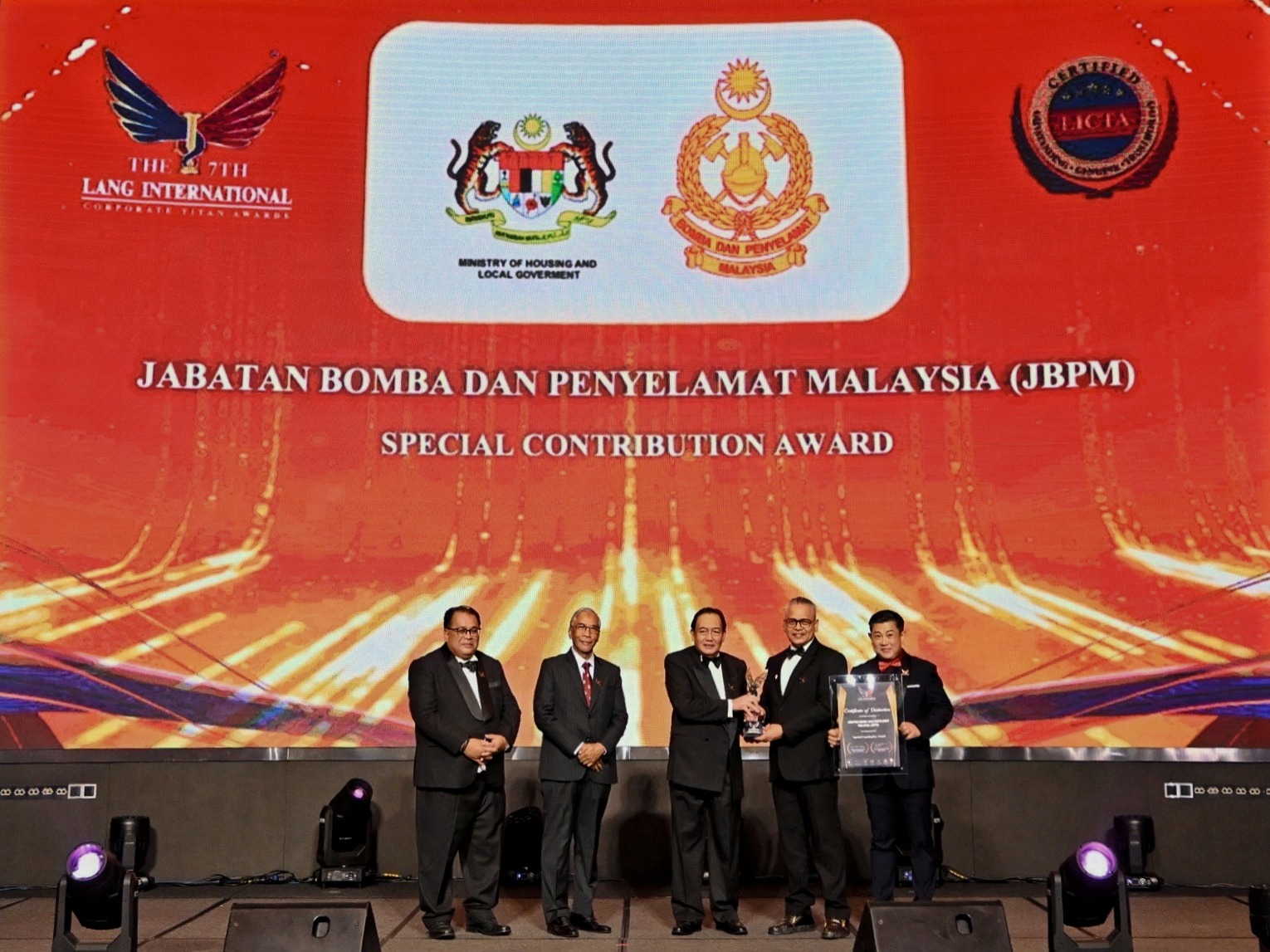 Jabatan Bomba Dan Penyelamat Malaysia (JBPM) was awarded with the “Special Contribution Award” at the 7th Lang International Corporate Titan Awards (LICTA)!
