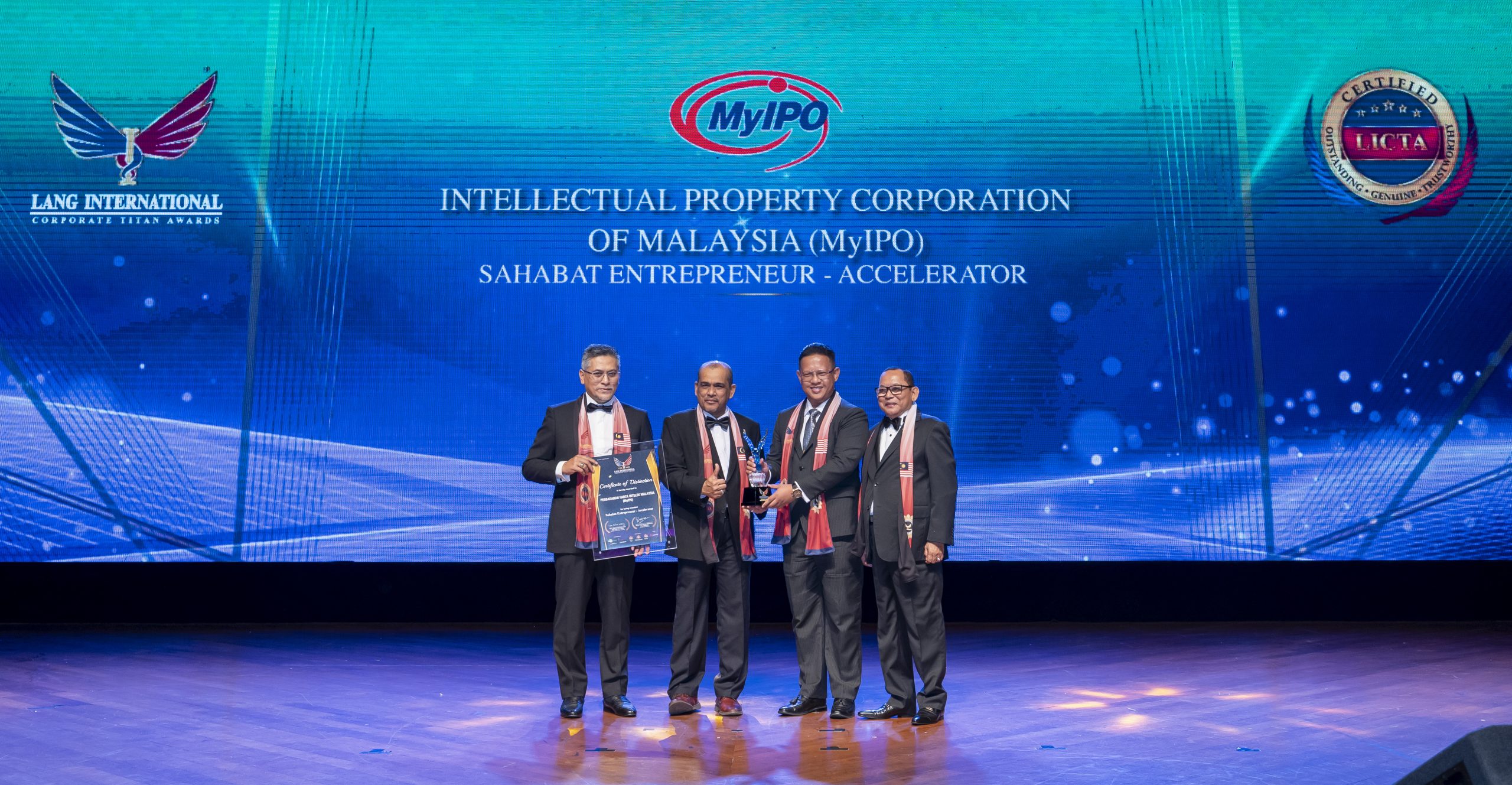 Intellectual Property Corporation Of Malaysia (MyIPO) was honored in the “Sahabat Entrepreneur – Accelerator” category at the 6th Lang International Corporate Titan Awards (LICTA)!